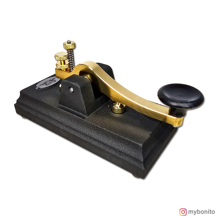 Die Begali Camelback ist eine hochwertige und in Teilen handgefertigte Handtaste. Sie ist eine gute Wahl für Funkamateure, die Wert auf eine exzellente Haptik und eine präzise Tastenreaktion legen. Die Camelback hat einen schweren Sockel aus Gusseisen und bringt etwa 1,6 Kilo auf die Waage. Die Anbauteile sind vergoldet, um eine zeitlos schöne und korrosionsbeständige Oberfläche zu erhalten. Die Kontakte sind aus 925/000 Silber.